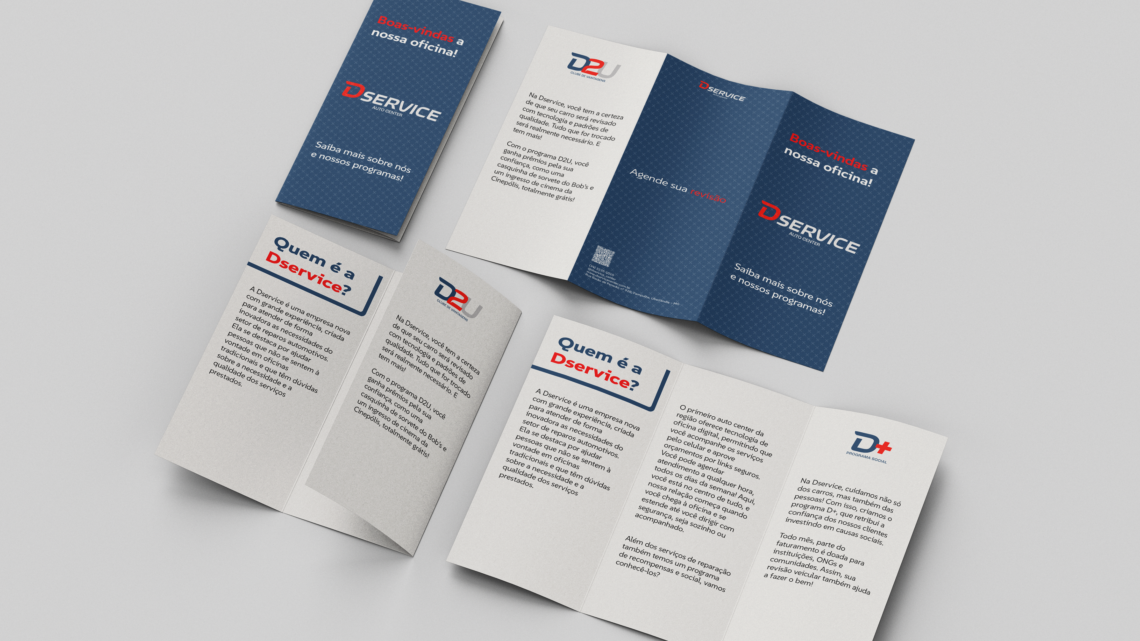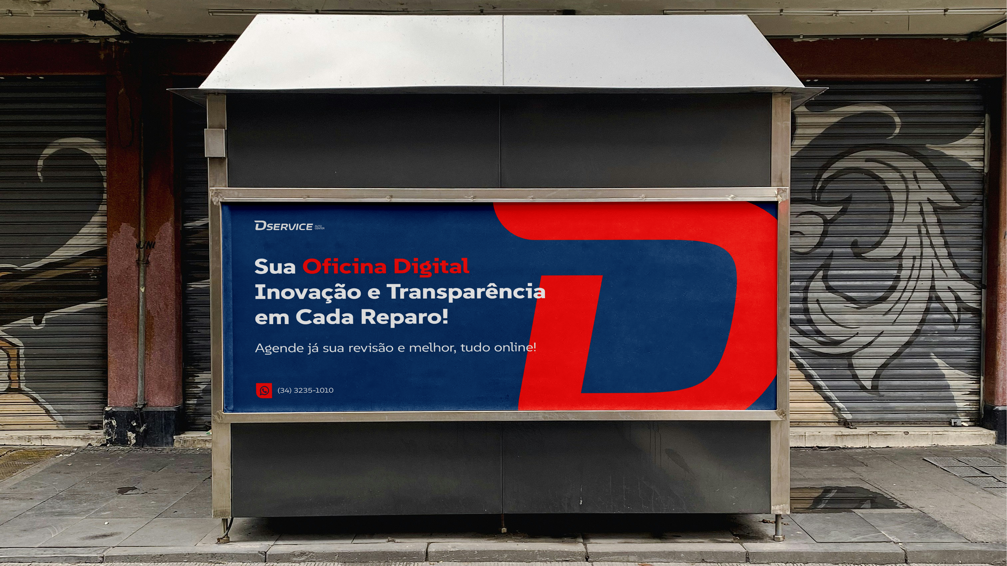 Para o símbolo da Dservice, optamos por trabalhar com o próprio “D” do logotipo. Por ser uma extensão da tipografia, o símbolo se destaca e torna-se facilmente identificável, reforçando a identidade visual da marca.